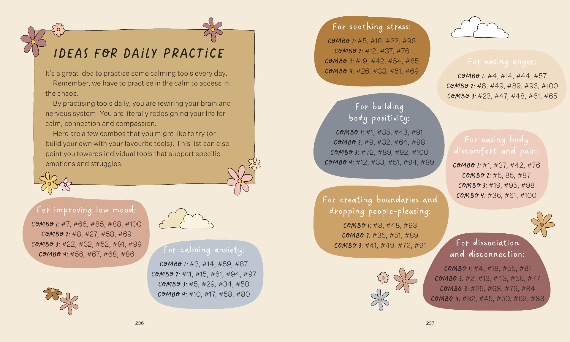 Together, the illustrations and colour palette form a sensory experience that mirrors the nervous system journey in the book: from dysregulation to calm, from survival mode to softness and safety.”