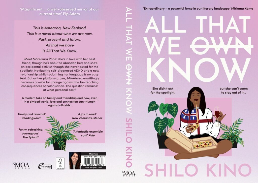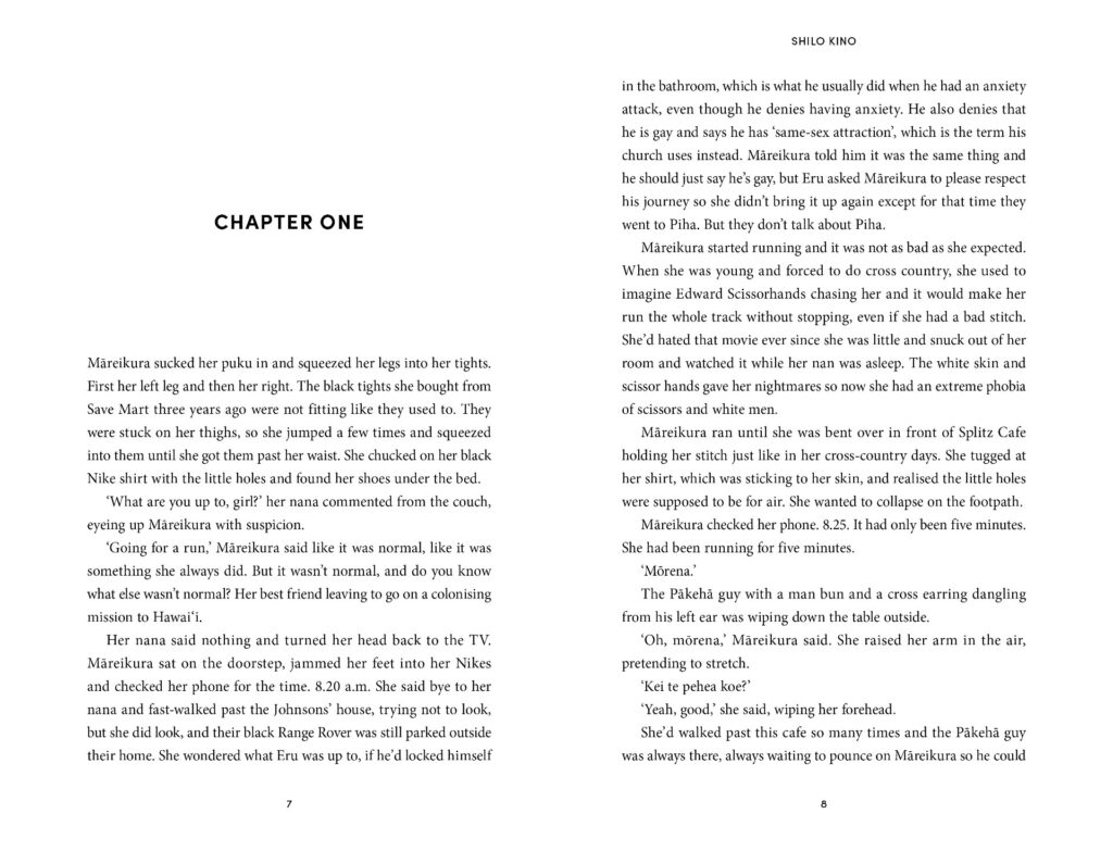 “This was not a super prescriptive brief, but we did know that we wanted it to be illustrative, with an artist commissioned separately to create an illustration of the main character Mareikura. We wanted it to be bright with bold block colour, standout typography to highlight the strikethrough aspect of the title, appealing/accessible to a broad range of readers, with strong, youthful energy and a look that would stand out against all the international fiction that dominates our shelves.”