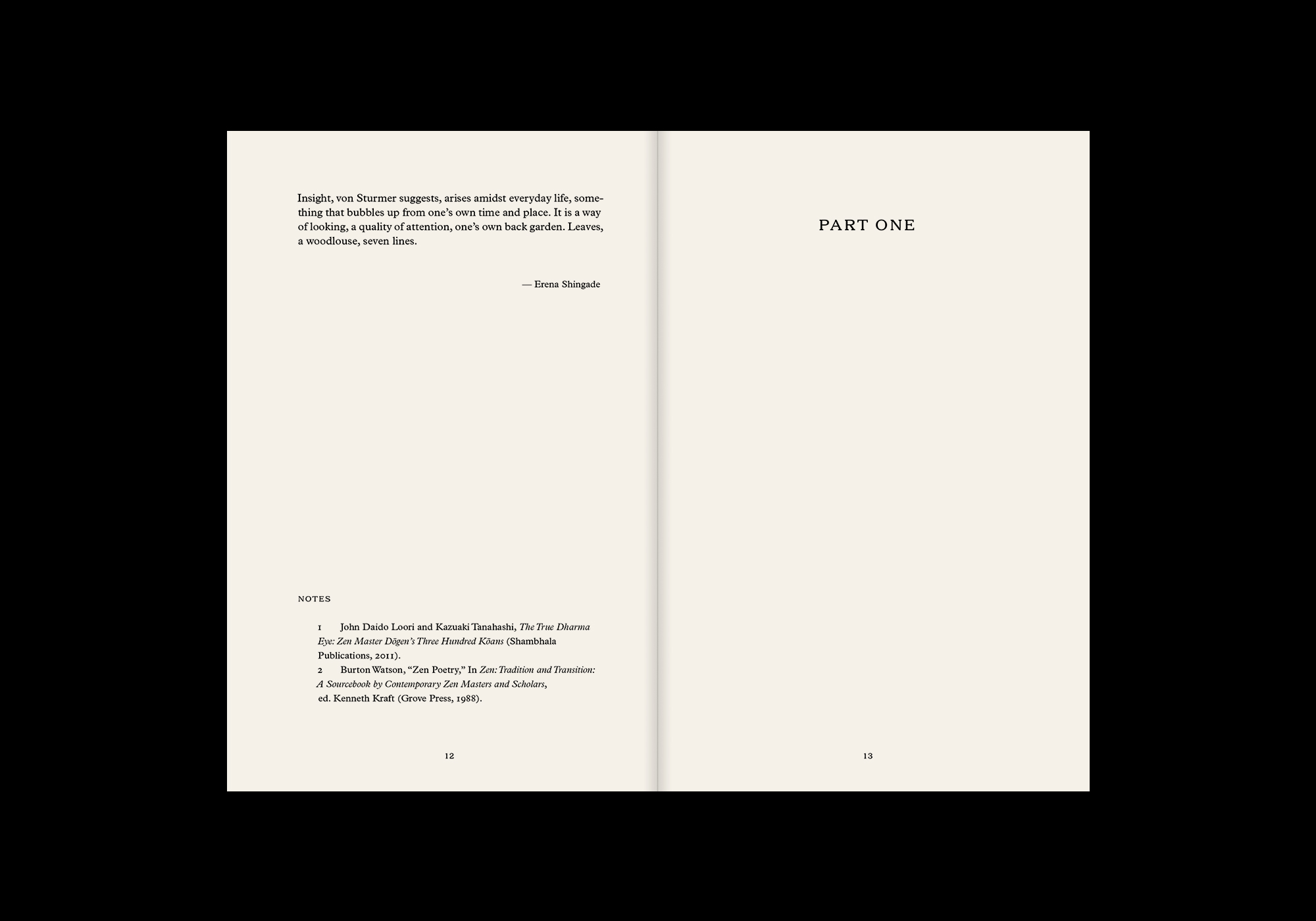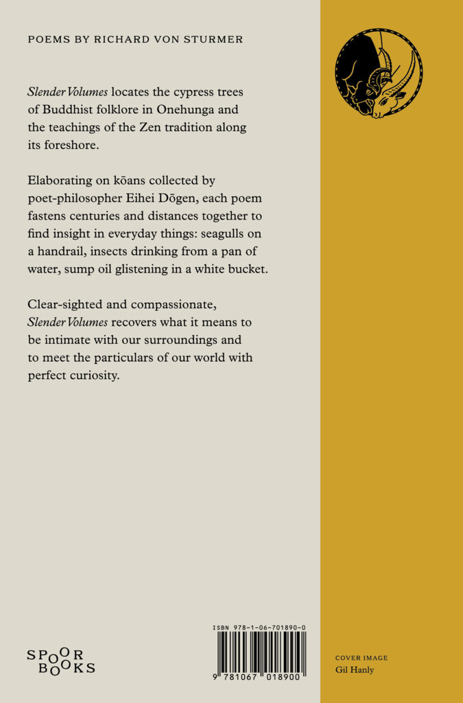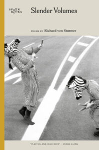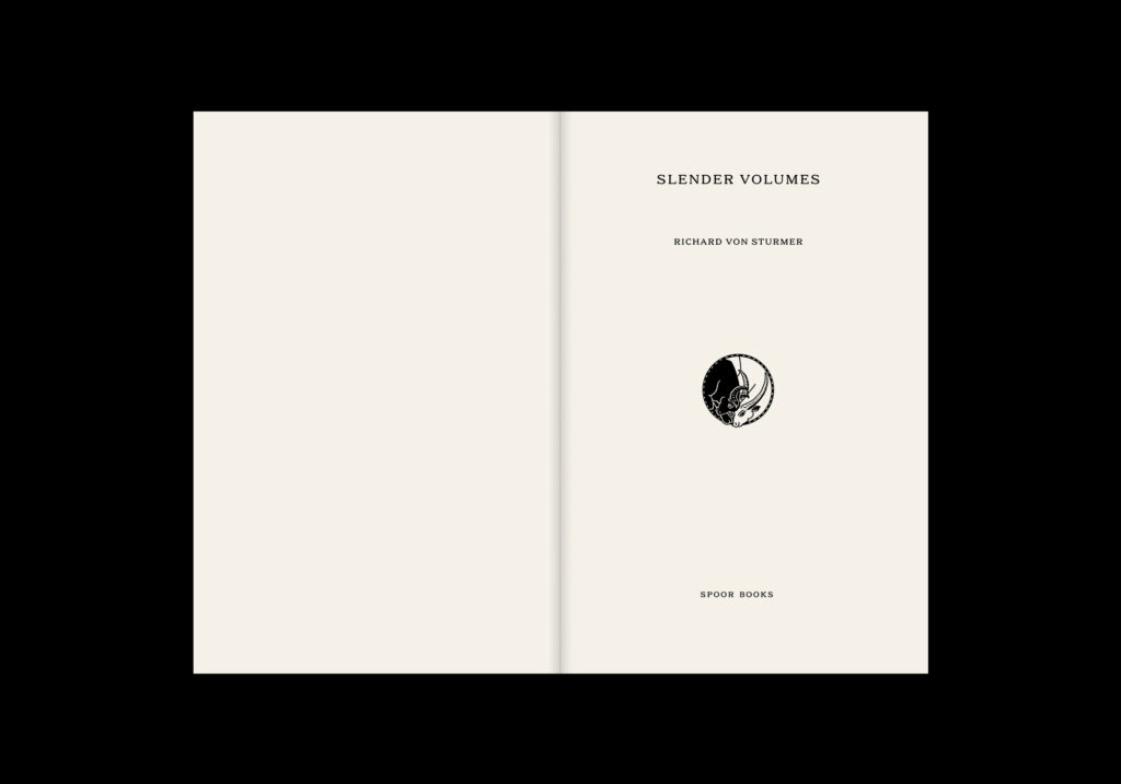 “Slender Volumes is the first book produced by Spoor Books, a new independent publisher. As the inaugural title, it may not be immediately apparent that the publication follows a structured template that will be used for all future titles. While certain design elements will adapt for each book — such as the cover image and spine colour — the typography and page construction will remain consistent, creating a sense of unity across their collection. Not all forthcoming books will be poetry, so the design needed to be flexible enough to accommodate multiple genres, while expressing the core values of the publisher.”