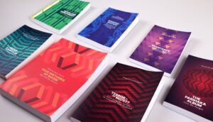 Each cover draws on a minimal but impactful colour palette, using two to three key colours that relate to the book’s themes or genre. While colour, scale, and pattern composition vary between titles, consistency is ensured through the placement of pattern, typographic treatment, and the use of block colour in a bold yet controlled way.